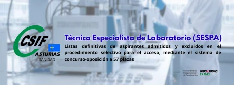 Técnico Especialista de Laboratorio.- Listas definitivas de aspirantes admitidos y excluidos