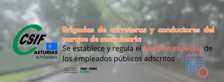 Brigadas de carreteras y conductores del parque de maquinaria.- Se establece y regula el horario especial de los empleados públicos adscritos