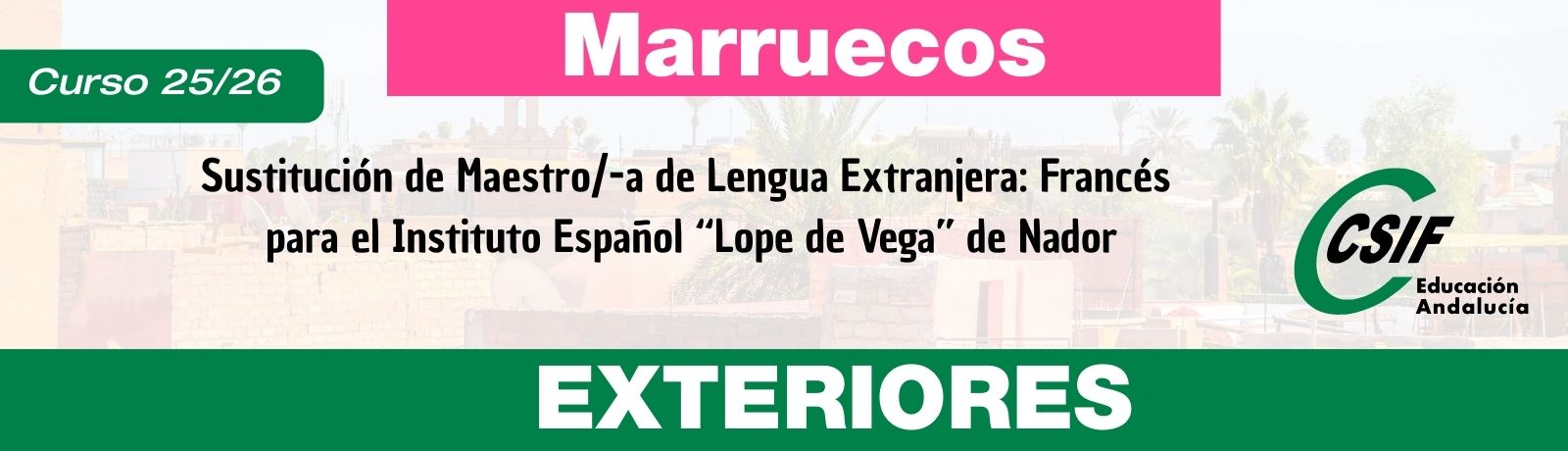 Publicada convocatoria para cubrir una plaza en el IE “Lope de Vega” (Nador). El plazo de presentación de solicitudes permanece abierto hasta el 24 de marzo de 2026.