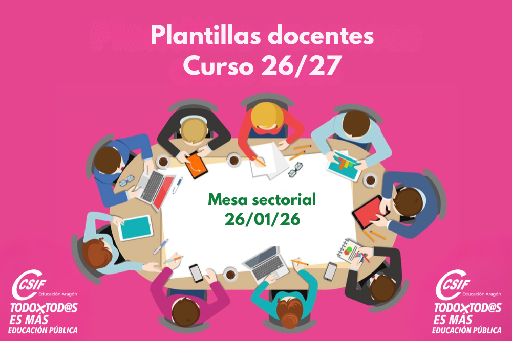 Mesa sectorial de Educación 26/01/26. Plantillas docentes. CSIF se abstiene en la mesa sectorial de plantillas