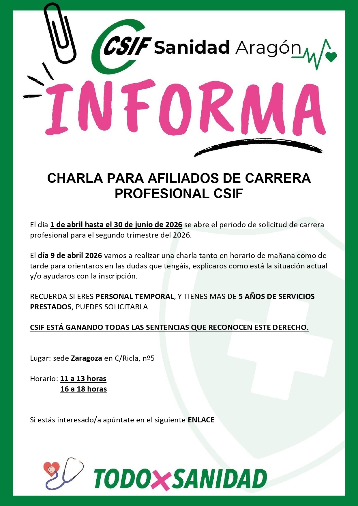 📍Lugar: sede CSIF Zaragoza en C/Ricla, nº5