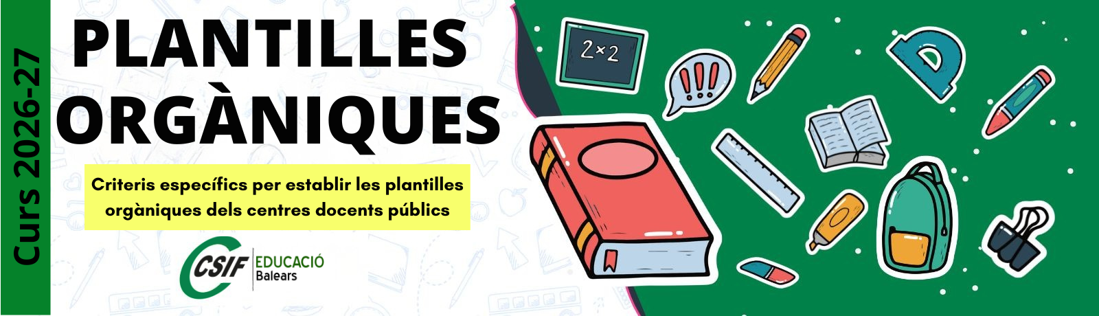 ➡️ Publicació al BOIB amb els criteris específics per establir les plantilles orgàniques dels centres docents públics d’ensenyament no universitari de les Illes Balears per al curs 2026-2027.
