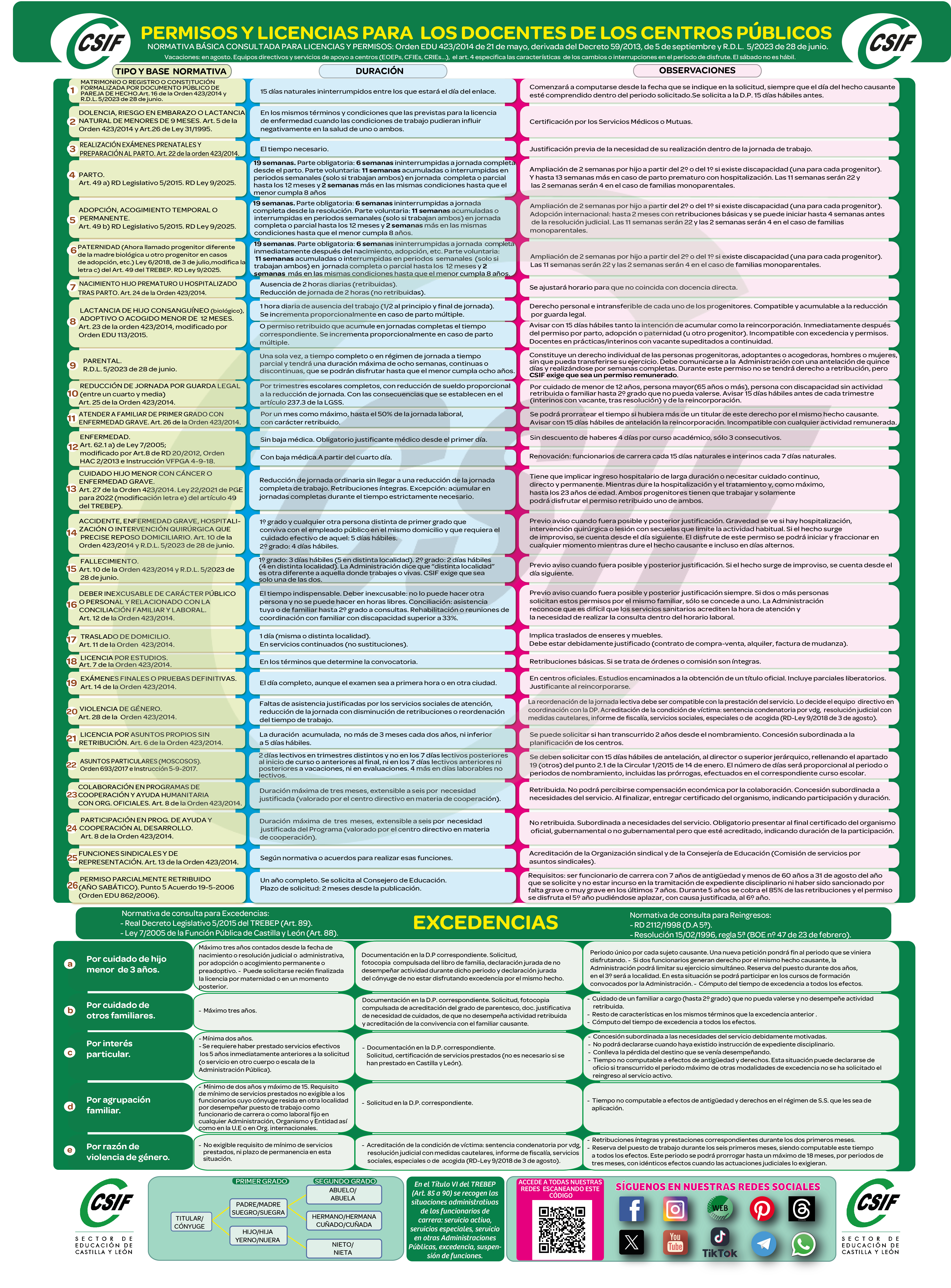 CSIF INFORMA: cartel de licencias y permisos totalmente actualizado.