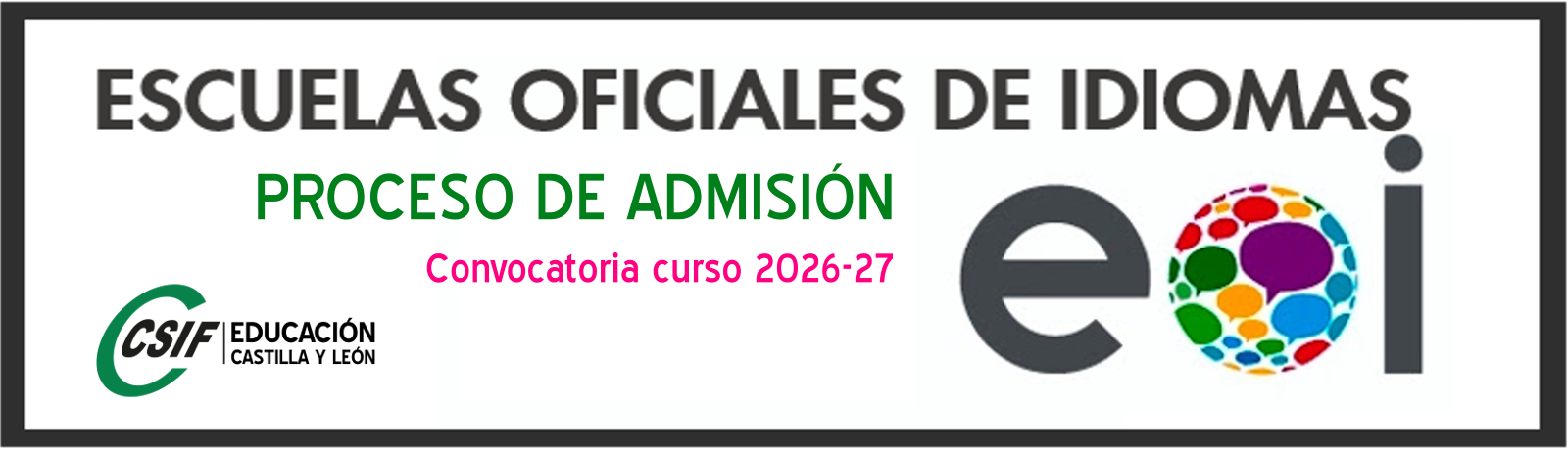 Proceso de admisión a las escuelas oficiales de idiomas de CyL. Curso 2026-27. BOCYL 27/03/2026.