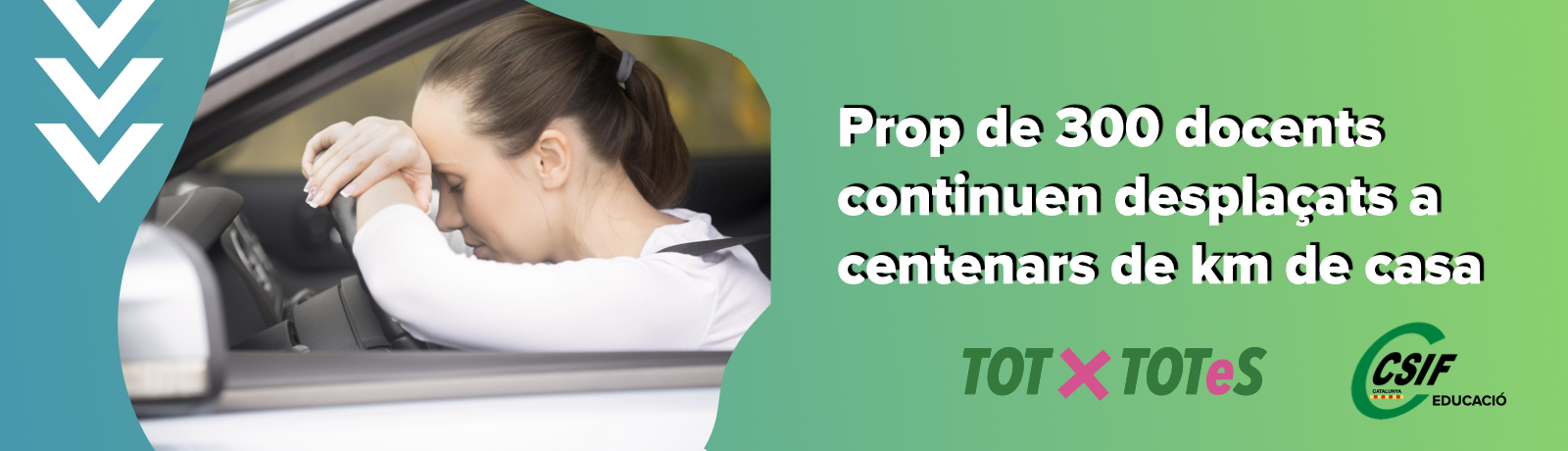 Prop de 300 docents a Catalunya continuen treballant entre 150 i 300 quilòmetres lluny del seu domicili, cinc mesos després de les adjudicacions d’estiu. Aquesta situació, que afecta especialment mestres i professorat amb càrregues familiars, problemes de salut o situacions de vulnerabilitat, s’ha convertit en un còctel emocional i físic insostenible per a molts professionals.