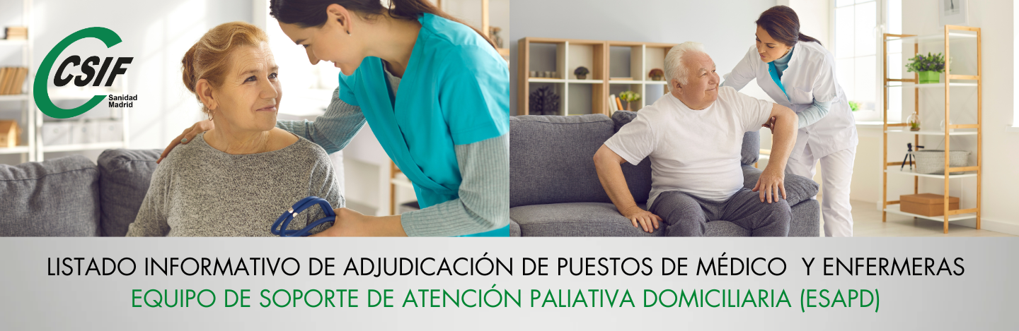 Listados informativos de adjudicación de los puestos de Médico y Enfermera de Equipo de Soporte de Atención Paliativa Domiciliaria (ESAPD)