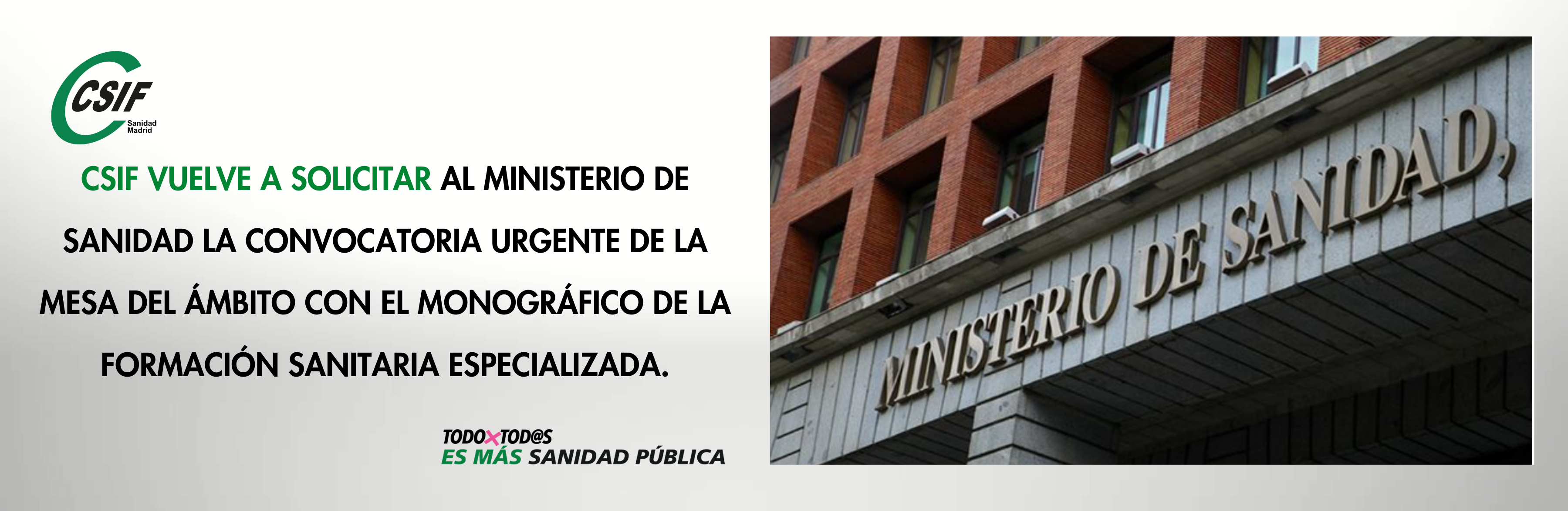 CSIF vuelve a solicitar al Ministerio de Sanidad la convocatoria urgente de la Mesa del Ámbito con el monográfico de la Formación Sanitaria Especializada.