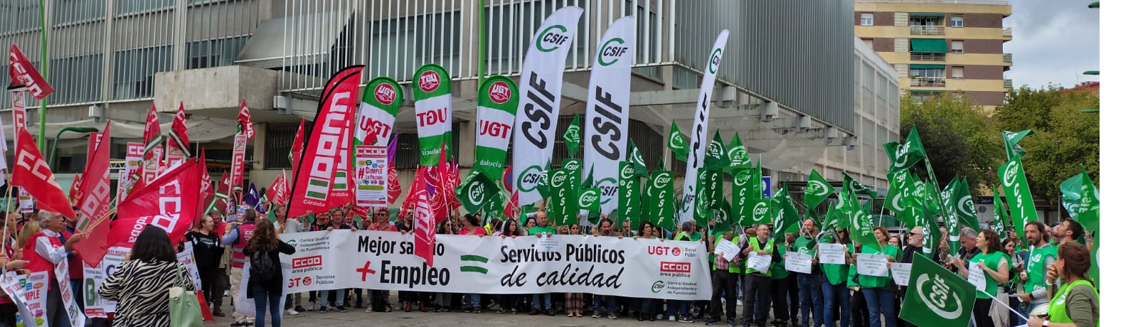UGT, CCOO y CSIF se concentran en Córdoba para decir “¡Basta ya!” al ministro Óscar López: o se sienta a negociar o tendrá huelga general