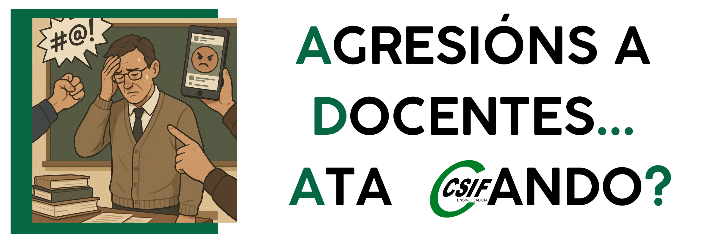 O 50% do profesorado sufriu insultos, agresións e conflitos en redes sociais... sen recibir o imprescindible apoio da Administración para abordar esta grave situación.