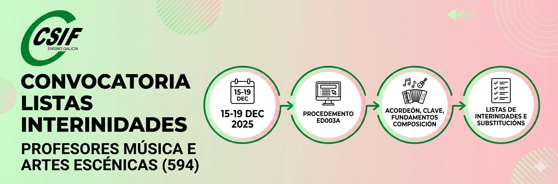 Publicada a resolución do 11 de decembro de 2025 da Dirección Xeral de Centros e Recursos Humanos, pola que se abre o procedemento para a elaboración de listas nas seguintes especialidades do corpo 594: