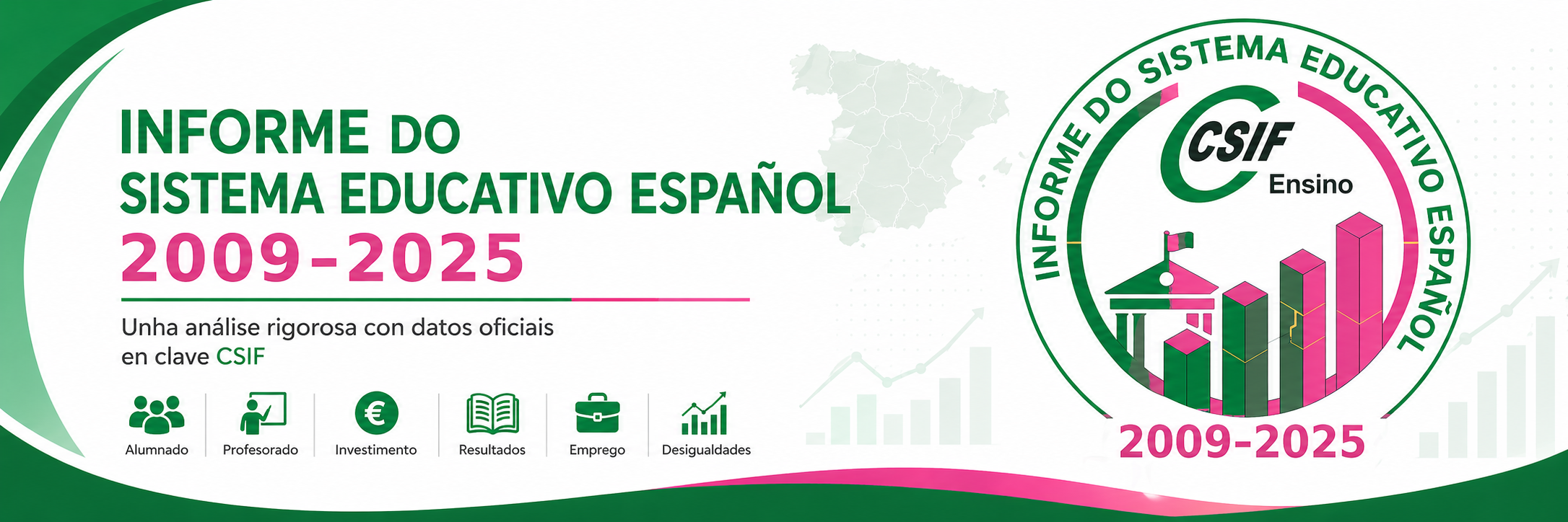 CSIF Educación publica o Informe do Sistema Educativo Español 2009-2025 en clave CSIF, un amplo estudo que analiza a evolución da educación española nos últimos dezaseis anos a partir de datos oficiais. O documento recolle unha visión global sobre alumnado, profesorado, investimento educativo, resultados académicos, emprego, desigualdades territoriais e propostas de mellora para o sistema educativo.