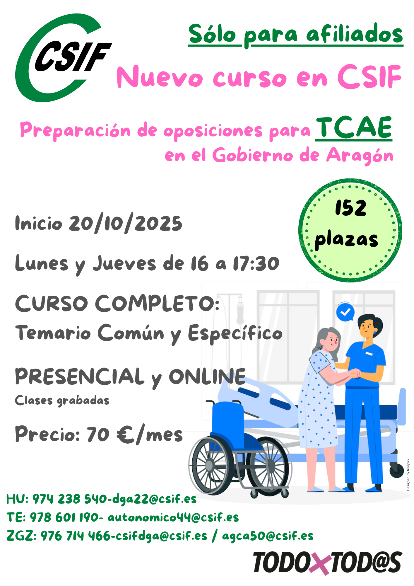 El sector de DGA en Huesca ha organizado la primera edición del curso de preparación de oposiciones para entrar a formar parte del cuerpo de Técnicos en Cuidados Auxiliares de Enfermería en el Instituto Aragonés de Servicios Sociales.