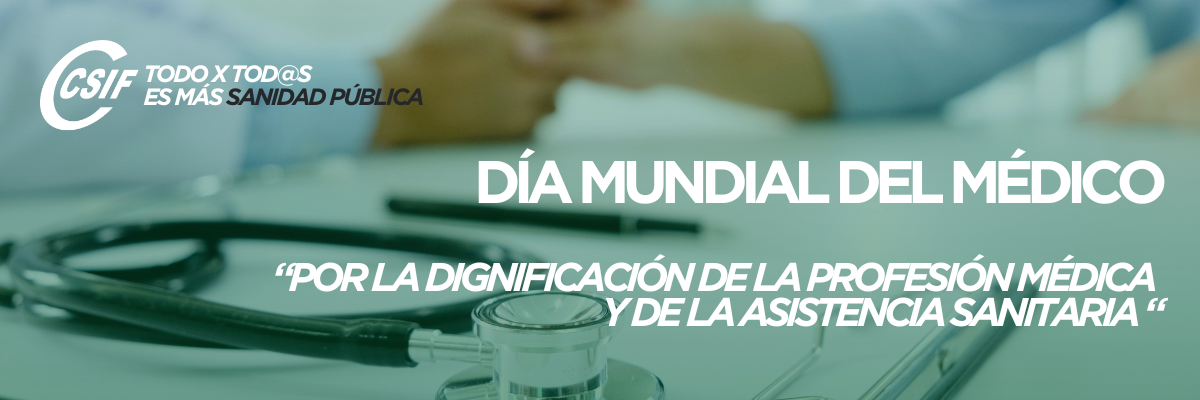 En este día queremos, desde CSIF, destacar y reconocer el trabajo y el esfuerzo diario que realizan nuestros profesionales para poder atender y tratar, con la mayor calidad posible, los problemas de salud de toda la población, en un entorno sanitario que aún arrastra los graves problemas derivados de la catástrofe sanitaria por la COVID-19. Queremos aprovechar esta fecha para apoyar sus reivindicaciones en el plano académico, laboral y profesional. Estas reivindicaciones siempre han tenido como eje vertebrador defender, proteger y fortalecer el pilar fundamental del sistema sanitario, como es la relación médico-paciente, basándonos en una atención de calidad y apoyada en un patrimonio científico, sanitario, cultural y social.