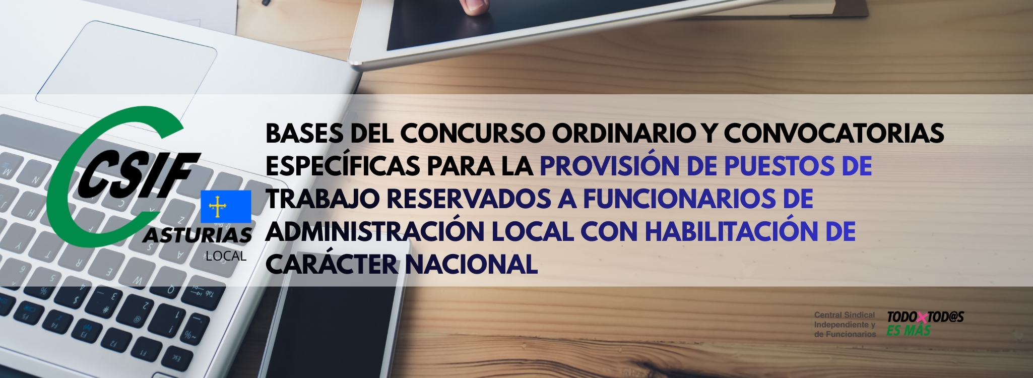 Bases del concurso ordinario y convocatorias específicas para la provisión de puestos de trabajo reservados a funcionarios de administración local con habilitación de carácter nacional