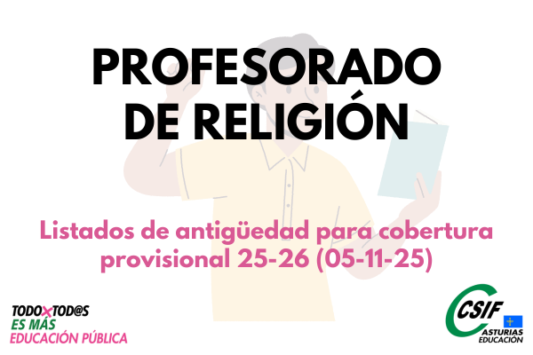 Profesorado Religión. Listados de antigüedad para cobertura provisional 25-26 (05-11-25)