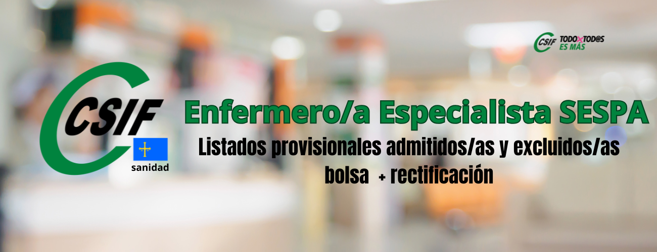 Enfermero/a Especialista SESPA.- Listados provisionales admitidos/as y excluidos/as bolsa + rectificación