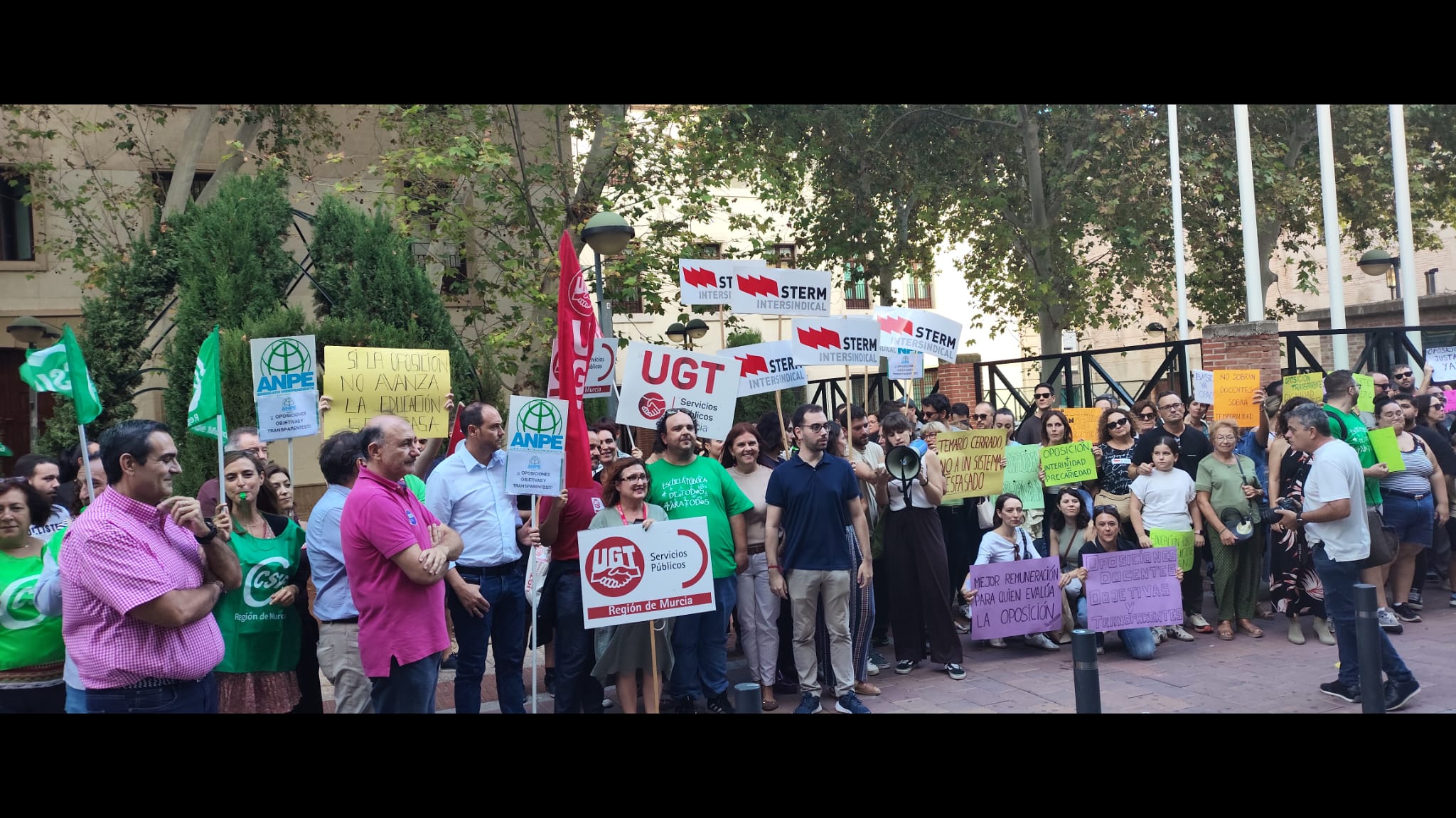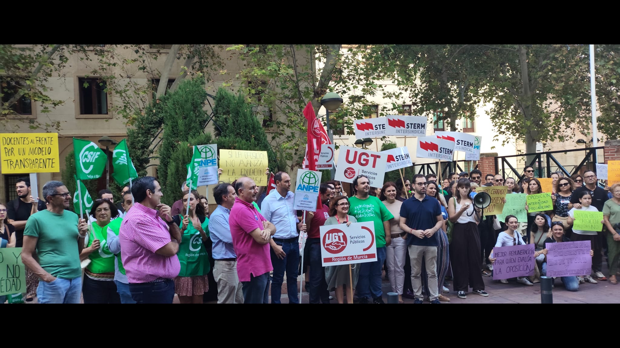 CSIF Educación Región de Murcia, junto al resto de organizaciones sindicales del ámbito educativo, ha participado activamente en la concentración celebrada esta tarde frente al Palacio de San Esteban, sede del Gobierno autonómico, para exigir un sistema de acceso a la función pública docente más justo, objetivo y transparente.