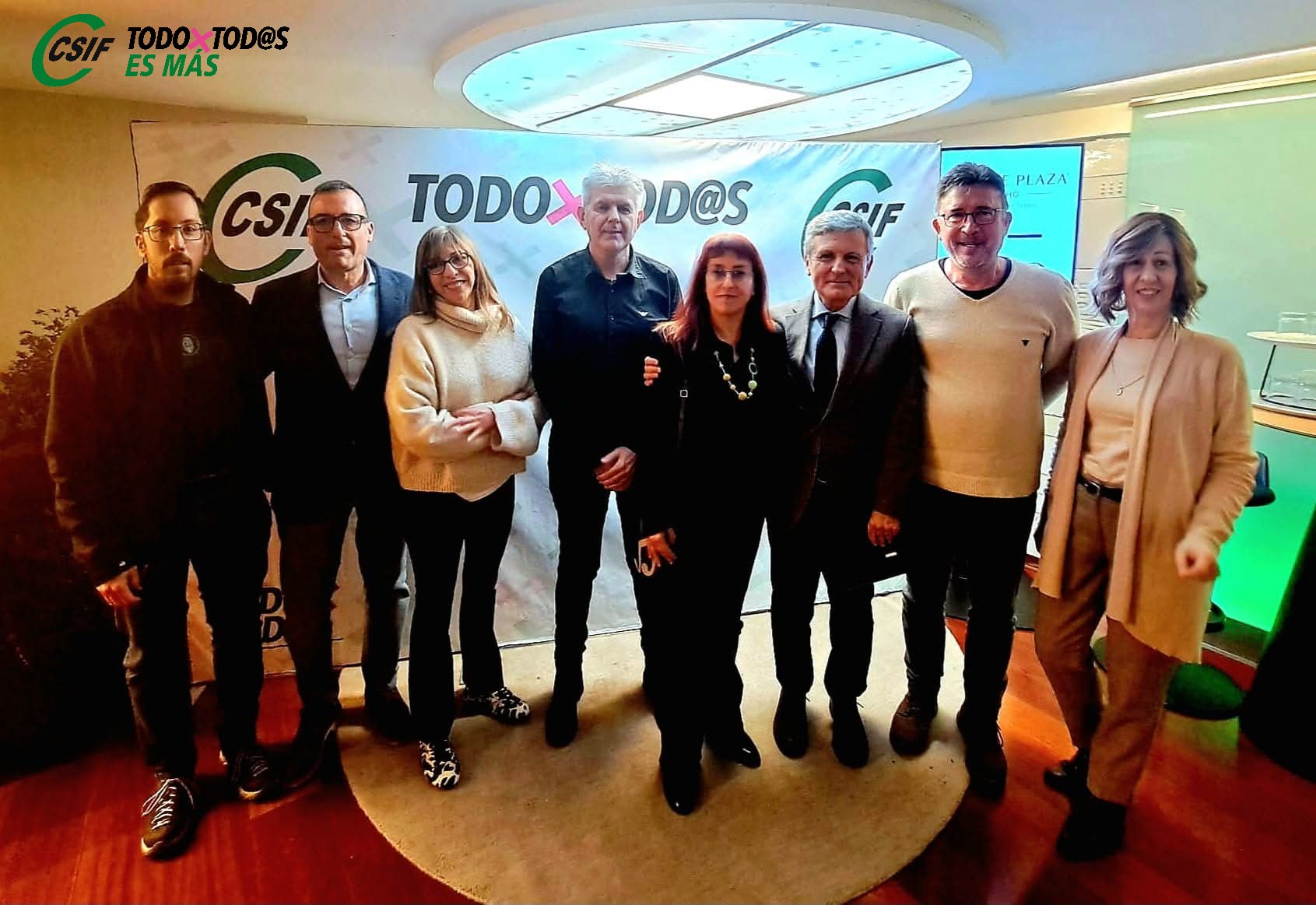 En la imagen, los delegados de Aragón con Óscar Venteo, presidente del sector de Entidades Públicas Estatales (EPE) de CSIF; Toni Díaz, vicepresidente de CSIF; y Pedro Saura, presidente de Correos y nuestra delegada de Teruel, Rosa Sánchez.