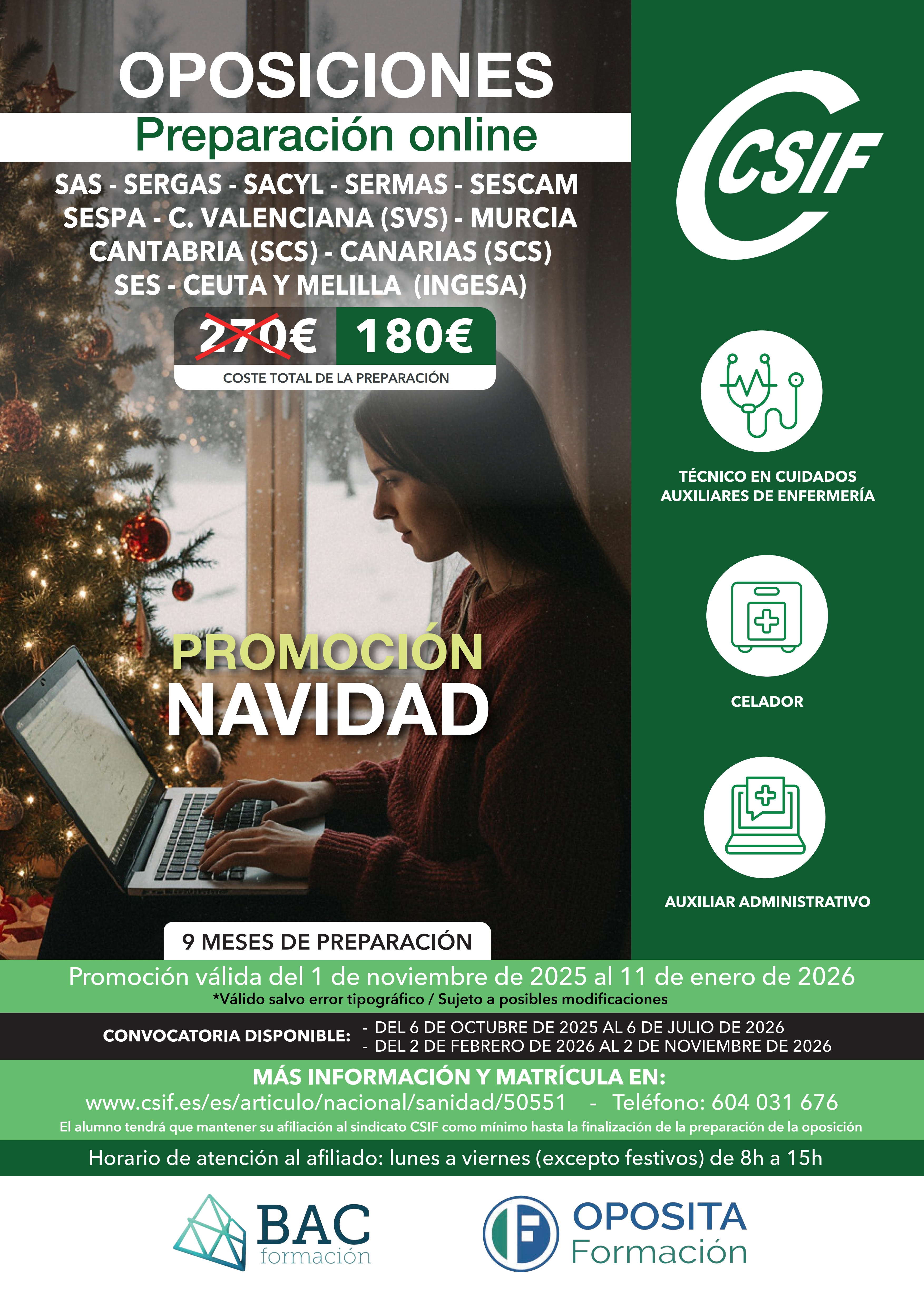 — Para disfrutar del descuento del 25% para la OPE de Enfermería, se debe de poner en contacto enviando email a formacion.sectores3@csif.es para obtener el código descuento.
