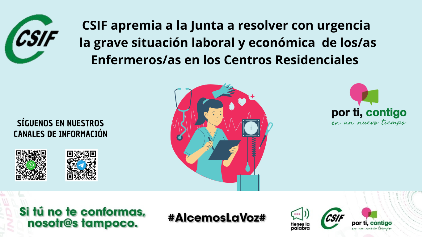 CSIF apremia a la Junta a resolver con urgencia la grave situación laboral y económica de los enfermeros en los centros residenciales