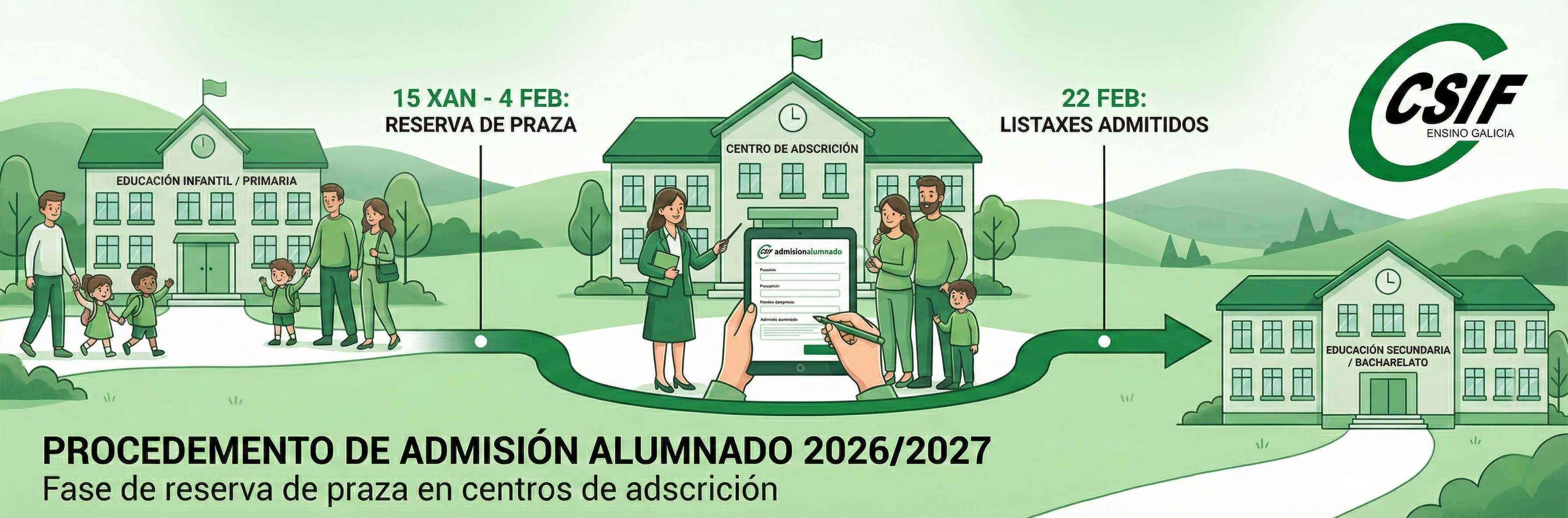 A Consellería informa do inicio do procedemento de admisión de alumnado en centros docentes sostidos con fondos públicos para o curso 2026/2027, comezando pola fase de reserva de praza en centros de adscrición.