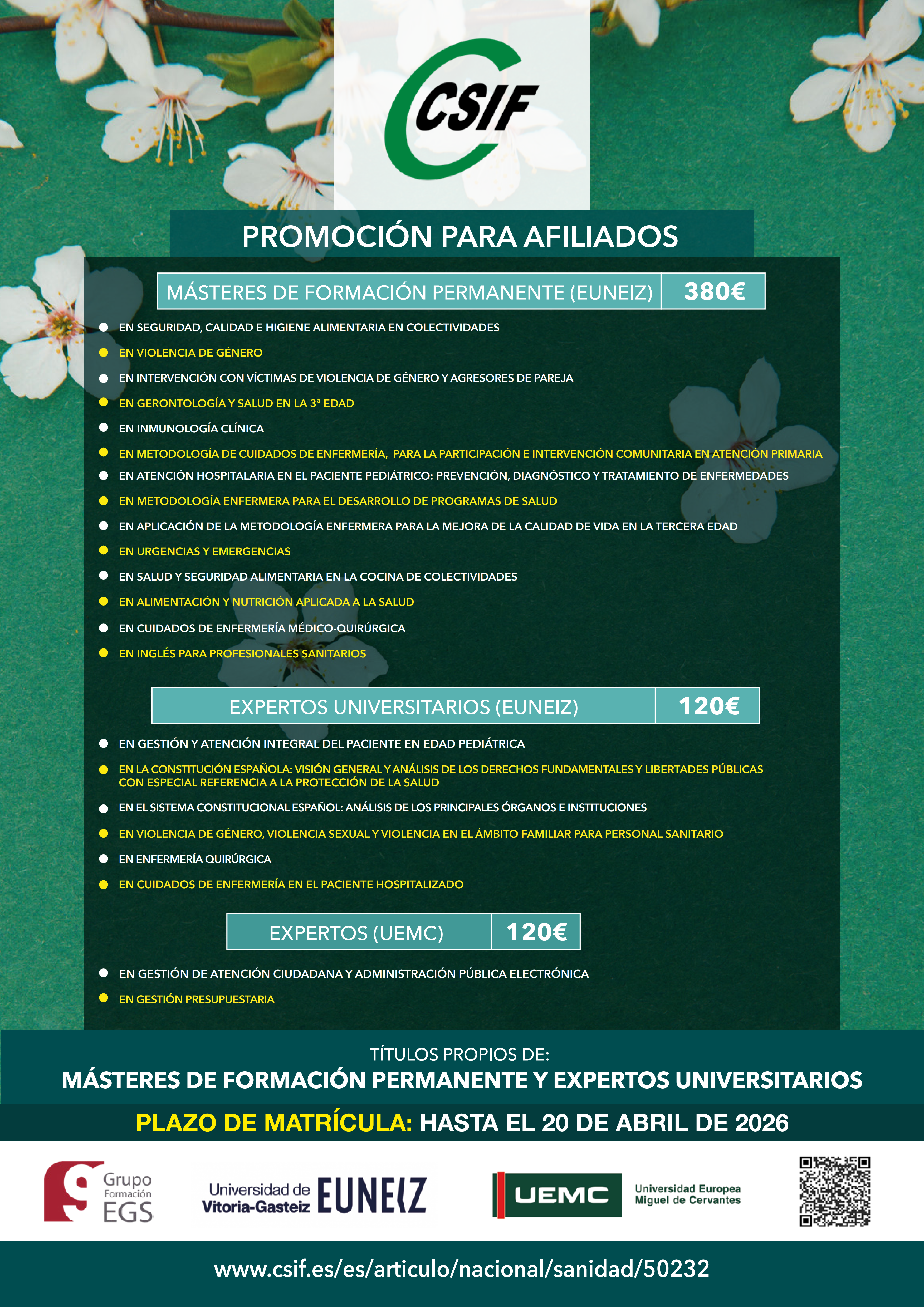 - MÁSTER EN GESTIÓN SANITARIA Y LABORAL: FUNDAMENTOS LEGALES Y HERRAMIENTAS ADMINISTRATIVAS (CC.AA. DE CASTILLA Y LEÓN)