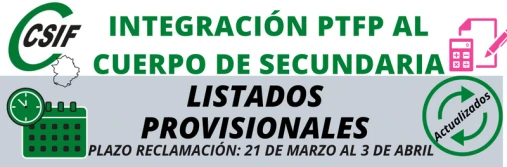 LISTADOS PROVISIONALES PROCEDIMIENTO INTEGRACIÓN PTFP A SECUNDARIA.
