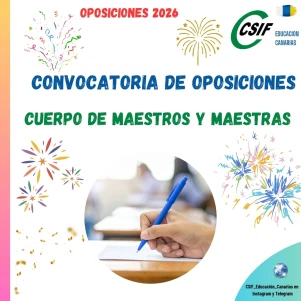 CONVOCATORIA DE OPOSICIONES MAESTROS 2026. Publicada la convocatoria con CARÁCTER INFORMATIVO EN LA WEB DE LA CONSEJERÍA DE EDUCACIÓN hasta que se publique en el Boletín Oficial de Canarias, B.O.C.