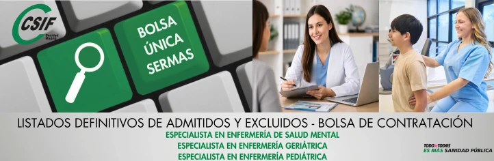 Listados definitivos de admitidos y excluidos Bolsa Temporal del SERMAS