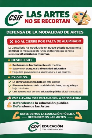 CSIF EN DEFENSA DE LA MODALIDAD DE ARTES EN BACHILLERATO