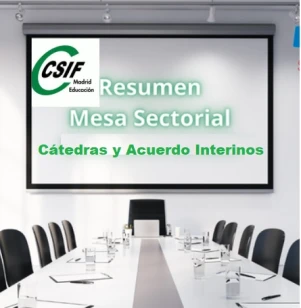 Resumen Mesa sectorial sobre convocatoria de catedráticos de Artísticas, Secundaria, F.P. y EOI y aclaración de interpretación del artículo 8 del acuerdo de interinos.