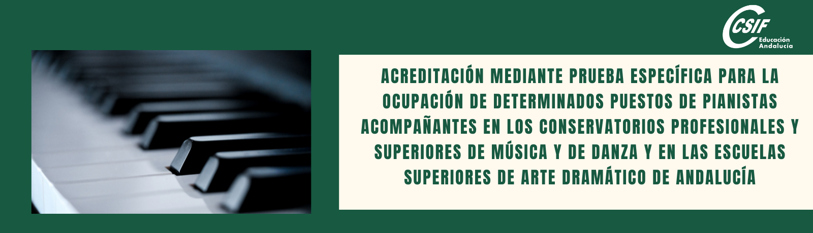 Acreditación mediante prueba específica para la ocupación de determinados puestos de pianistas acompañantes en los conservatorios profesionales y superiores de música y de danza y en las escuelas superiores de arte dramático de Andalucía