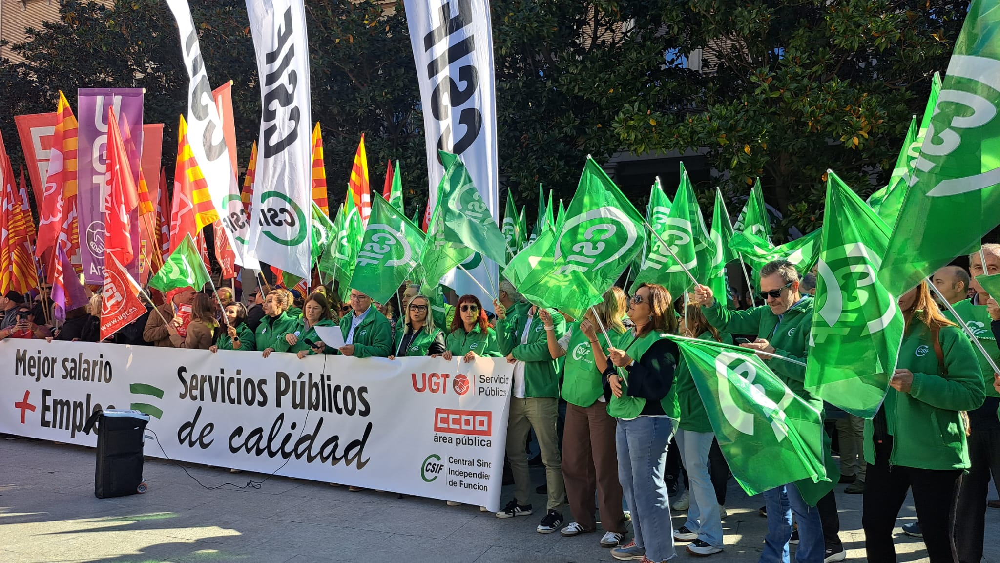 CSIF, UGT y CCOO han convocado concentraciones este jueves 30 de octubre ante las subdelegaciones del Gobierno de España y frente al Ministerio para la Transformación Digital y de la Función Pública por unos servicios públicos de calidad, incrementos salariales, más empleo y mejora de las condiciones laborales para más de tres millones y medio de empleados públicos (unos 112.000 en Aragón).