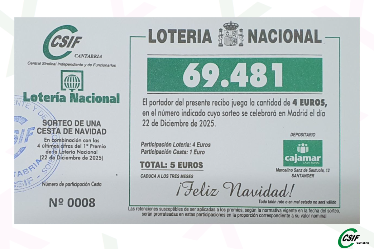 Ya tenemos la Lotería de Navidad de CSIF Cantabria