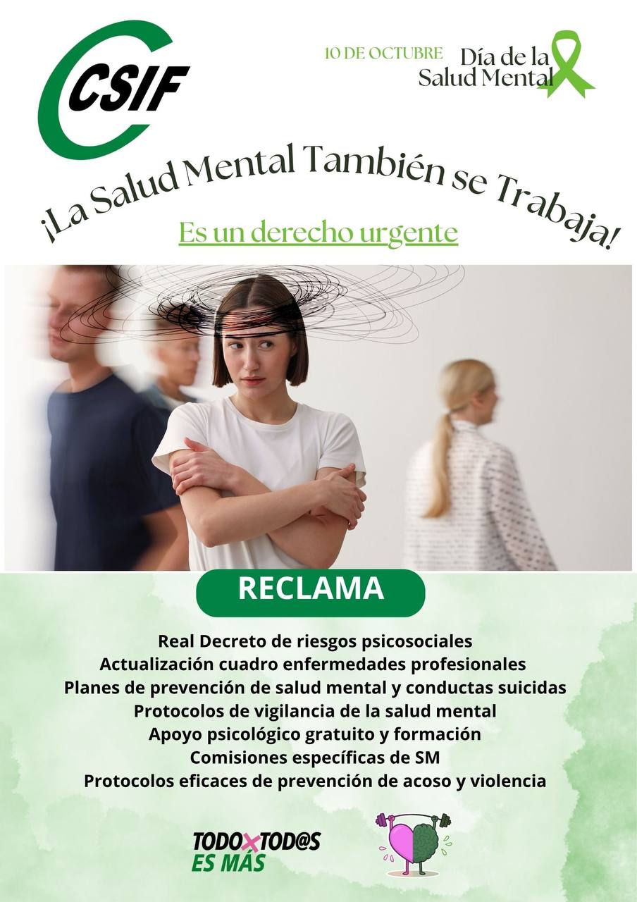 #DíaMundialSaludMental #SaludMentalLaboral #LaSaludMentalTambiénSeTrabaja #CSIFMadrid #CSIFAyuda #PrevenciónLaboral #EntornosSaludables