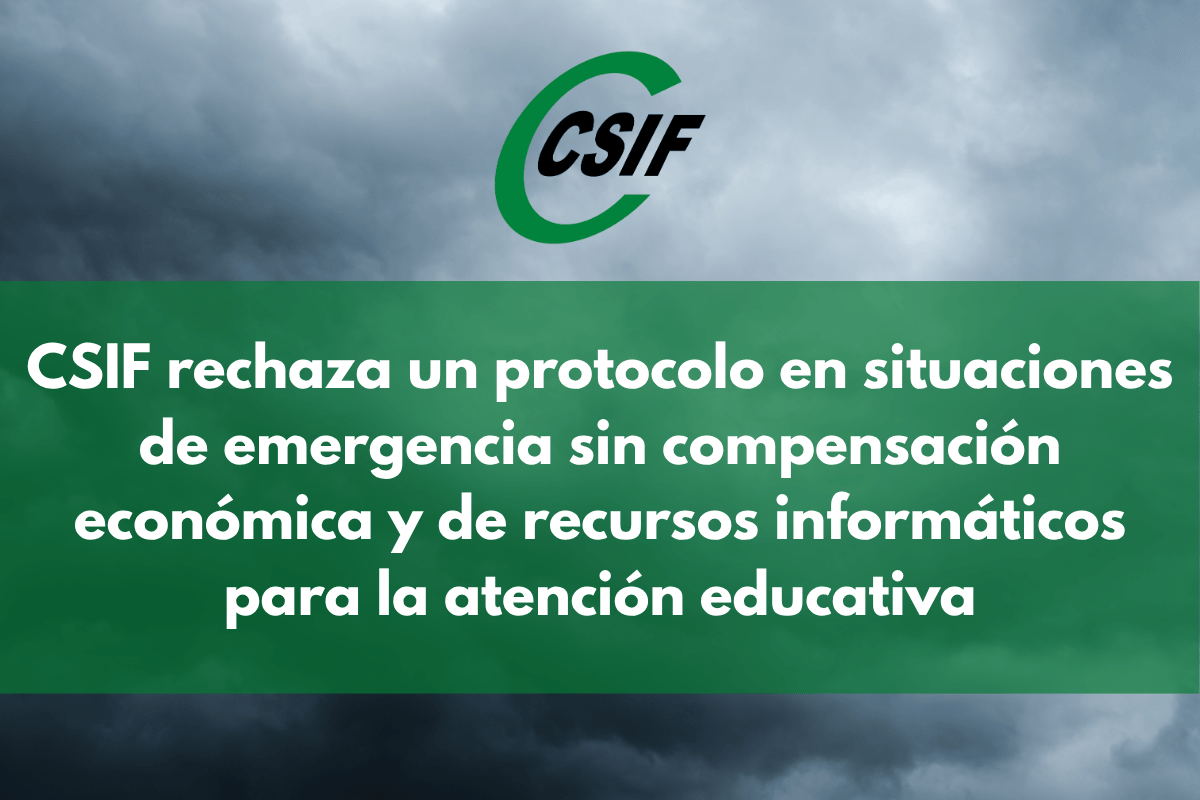 CSIF rechaza un protocolo en situaciones de emergencia sin compensación económica y de recursos informáticos para la atención educativa