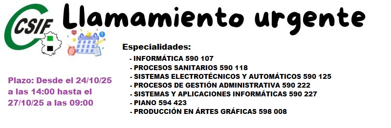 LLAMAMIENTO URGENTE: 24/10/2025. Varias especialidades