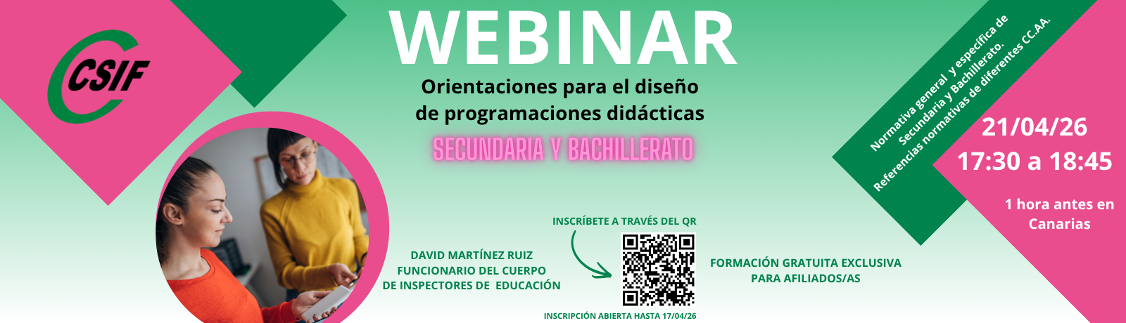 Inscripción para el Webinar: Orientaciones metodológicas para el diseño de programaciones didácticas - Secundaria y Bachillerato