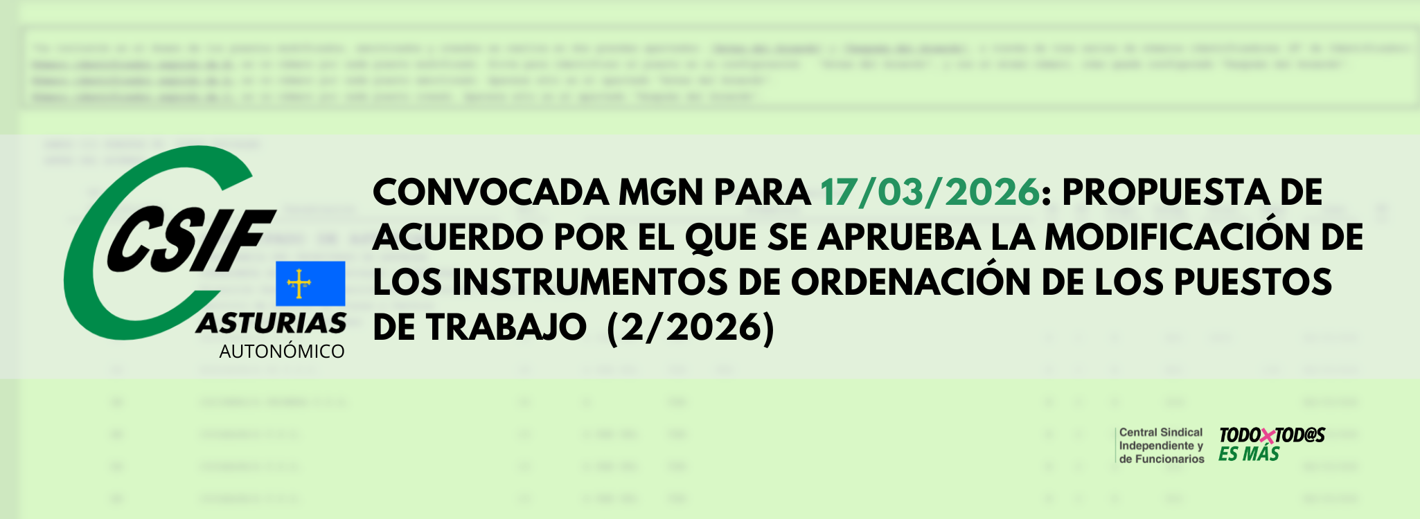 Convocada MGN para 17/03/2026: Propuesta de Acuerdo por el que se aprueba la modificación de los instrumentos de ordenación de los puestos de trabajo (2/2026)