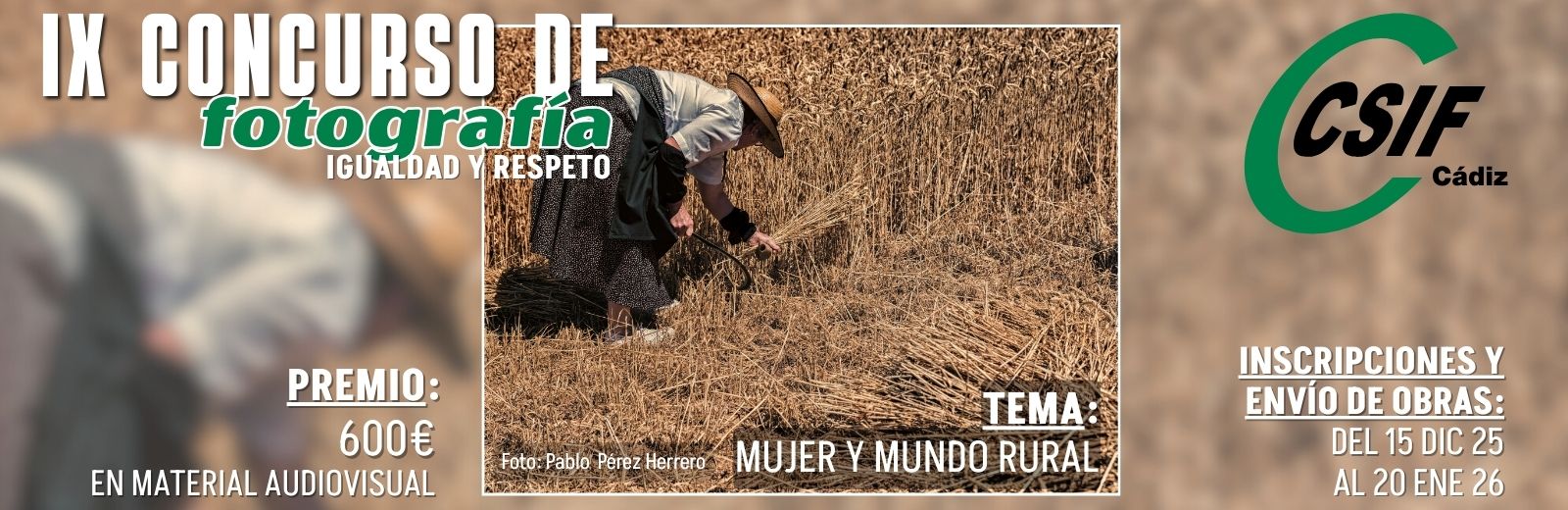 Rellene los campos necesarios para inscribirse en en el IX Concurso CSIF de Fotografía 'Igualdad y Respeto' cuyo tema central en esta edición es Mujer y mundo rural.