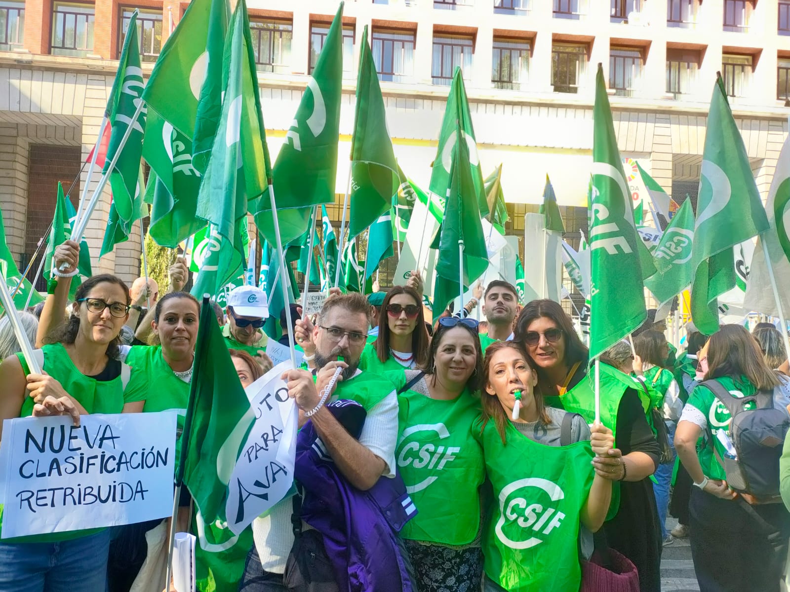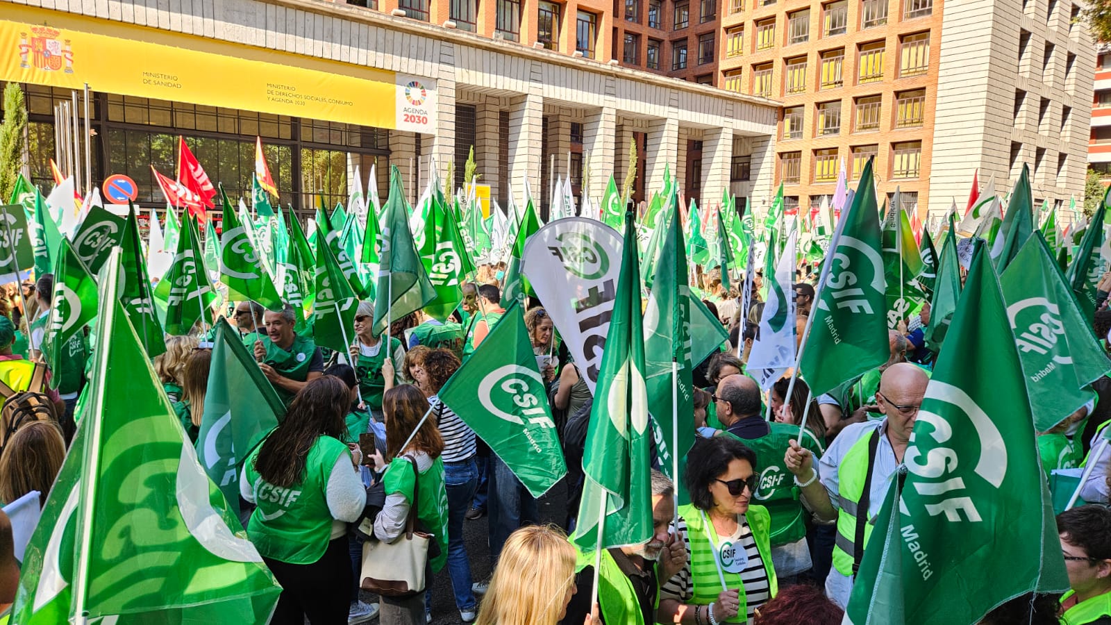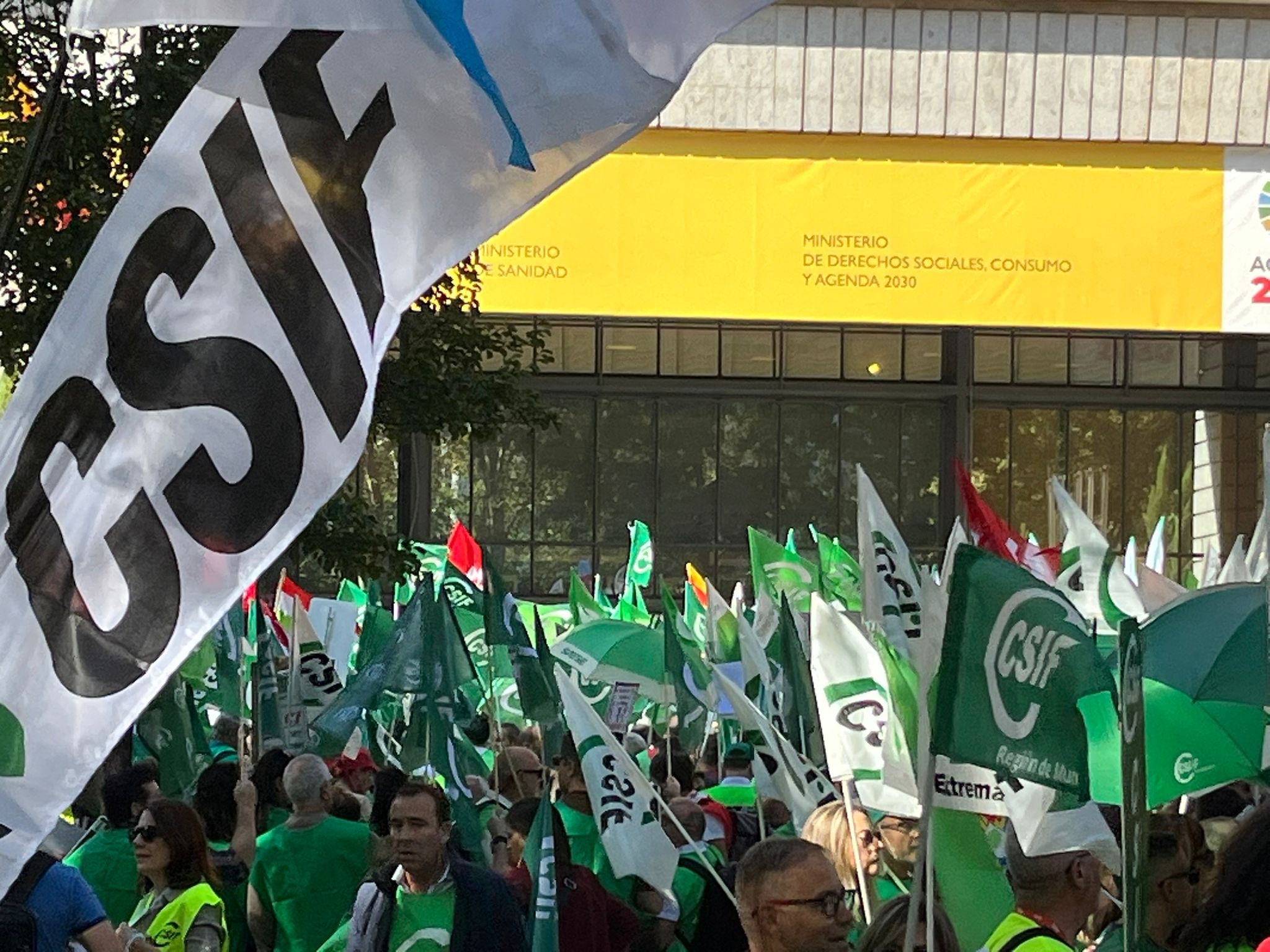 Convocadas por las organizaciones sindicales con representación en el Ámbito de Negociación (CSIF, SATSE-FSES, FSS-CCOO, UGT y CIG-Saúde) y procedentes de todas las autonomías, las trabajadoras y los trabajadores de las distintas categorías profesionales del Sistema Nacional de Salud (SNS) han portado pancartas y coreado lemas con el único objetivo de lograr un “Estatuto para avanzar” en sus derechos laborales.