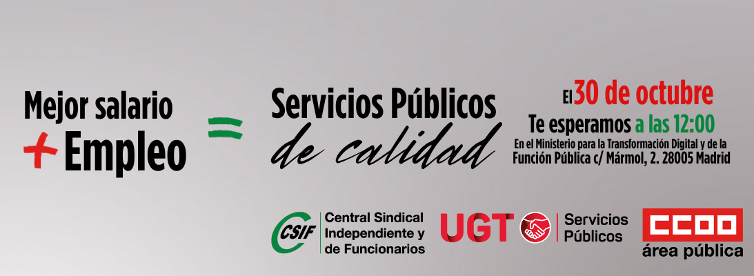 CSIF tiene la representación y el potencial necesario para hacerlo realidad, POR ESO OS PEDIMOS QUE SECUNDÉIS LAS CONCENTRACIONES CONVOCADAS EL DÍA 30 PARA DESBLOQUEAR LA NEGOCIACIÓN CON FUNCIÓN PÚBLICA Y PODER EXIGIR ESTA REIVINDICACIÓN.