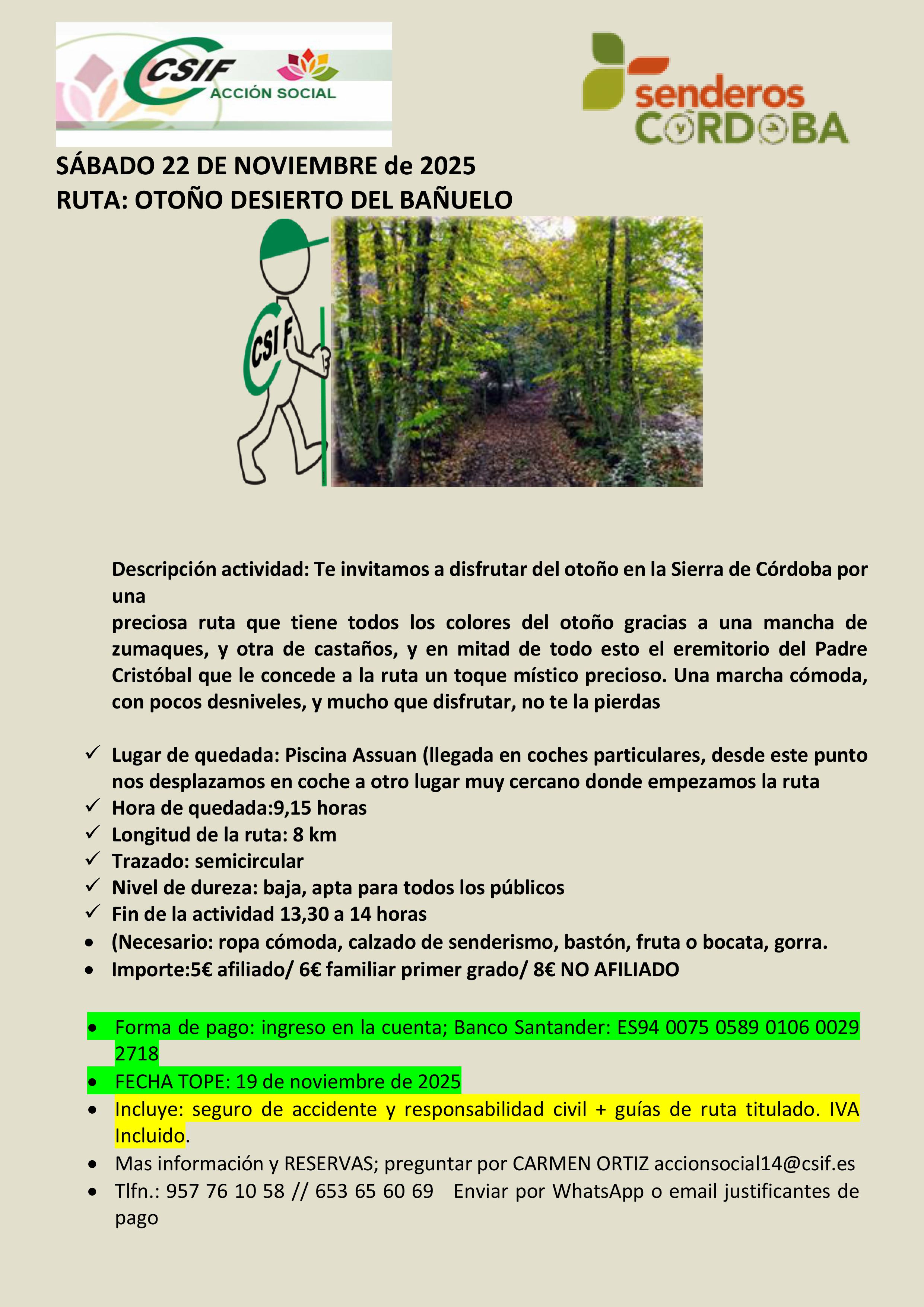 CSIF invita a disfrutar de los paisajes del otoño en la próxima ruta de senderismo