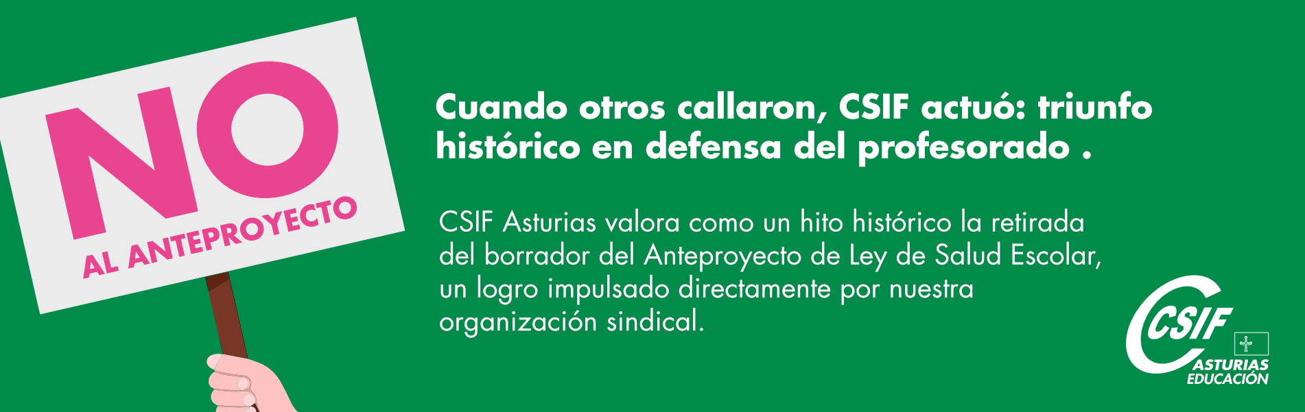 CSIF Asturias valora como un hito histórico la retirada del borrador del Anteproyecto de Ley de Salud Escolar, un logro impulsado directamente por nuestra organización sindical, que se posicionó de manera única y contundente en contra de esta propuesta perjudicial.