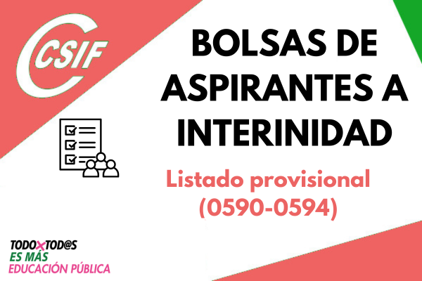 Bolsas de aspirantes a interinidad. Listado provisional (0590-0594)