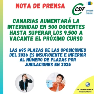CANARIAS AUMENTARÁ LA INTERINIDAD EN 500 DOCENTES HASTA SUPERAR LAS 9.500 VACANTES EL PRÓXIMO CURSO.