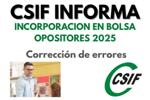 INCORPORACIÓN EN BOLSA OPOSITORES 2025.- Corrección de errores: listados personas acreditadas y no acreditadas