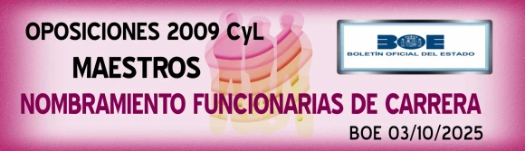 Oposiciones Maestros 2009 CyL. Nombramiento de funcionarias de carrera en el BOE 03/10/2025.