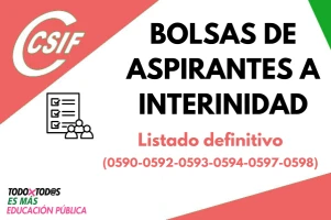 Bolsas de aspirantes a interinidad. Listado definitivo (0590-0592-0593-0594-0597-0598)