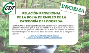 Relación provisional de las personas candidatas de la bolsa de empleo de la categoría de Logopeda.